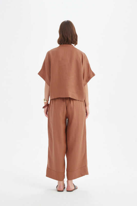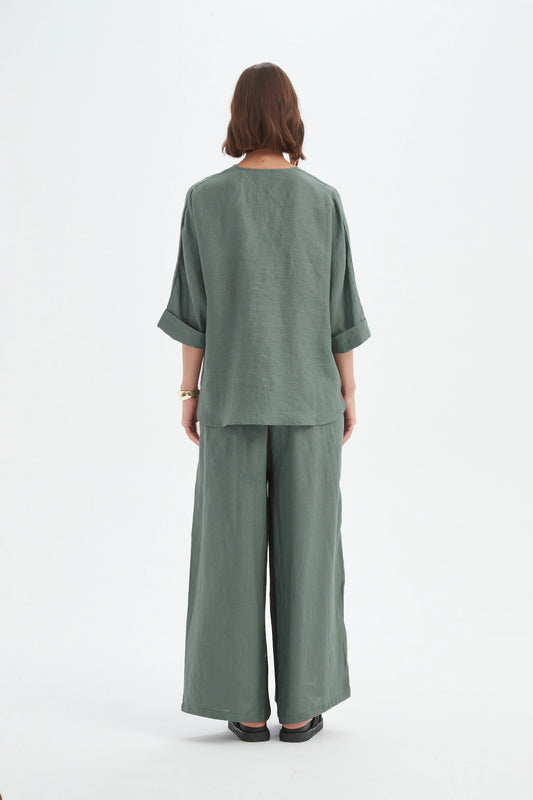 Tirelli - Boxy Button Linen Shirt - Cedar