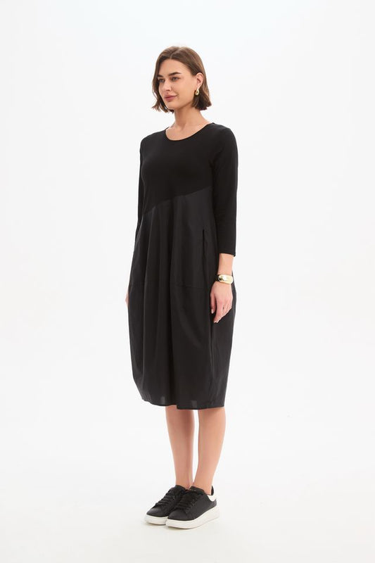 Tirelli - Diagonal Seam Combi Dress - Black