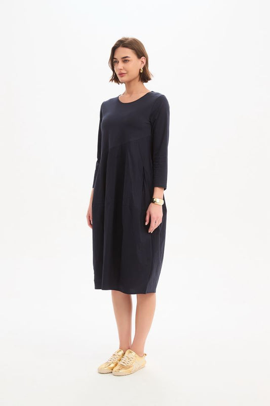 Tirelli - Diagonal Seam Combi Dress - Navy