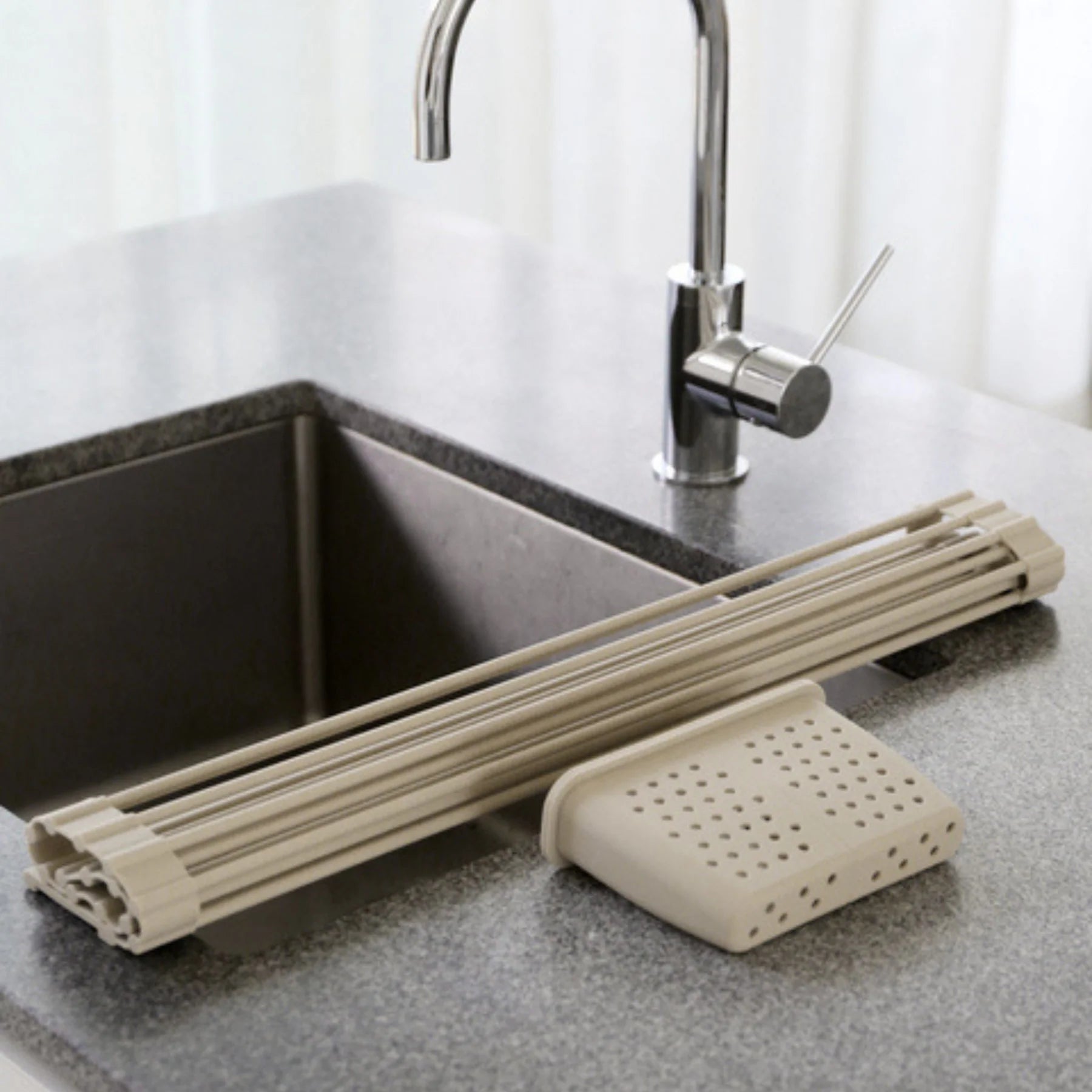 Designstuff - Folding Dishrack With Cutlery Holder - Sand