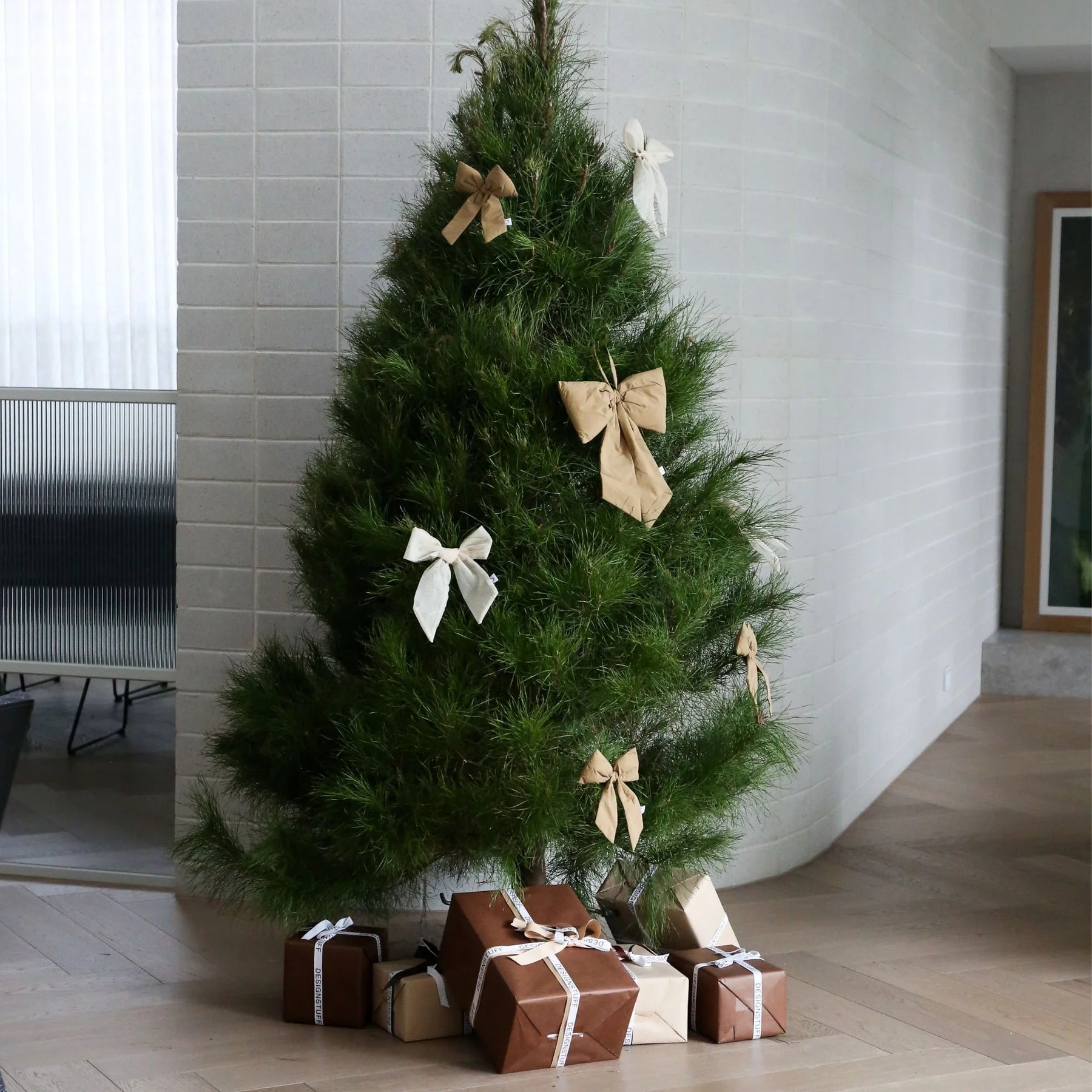 Our Tree Clip Christmas Bow is made from structured fabric creating a compact, shaped form that holds neatly. Its tails add just enough length to soften an edge or break up bare greenery.