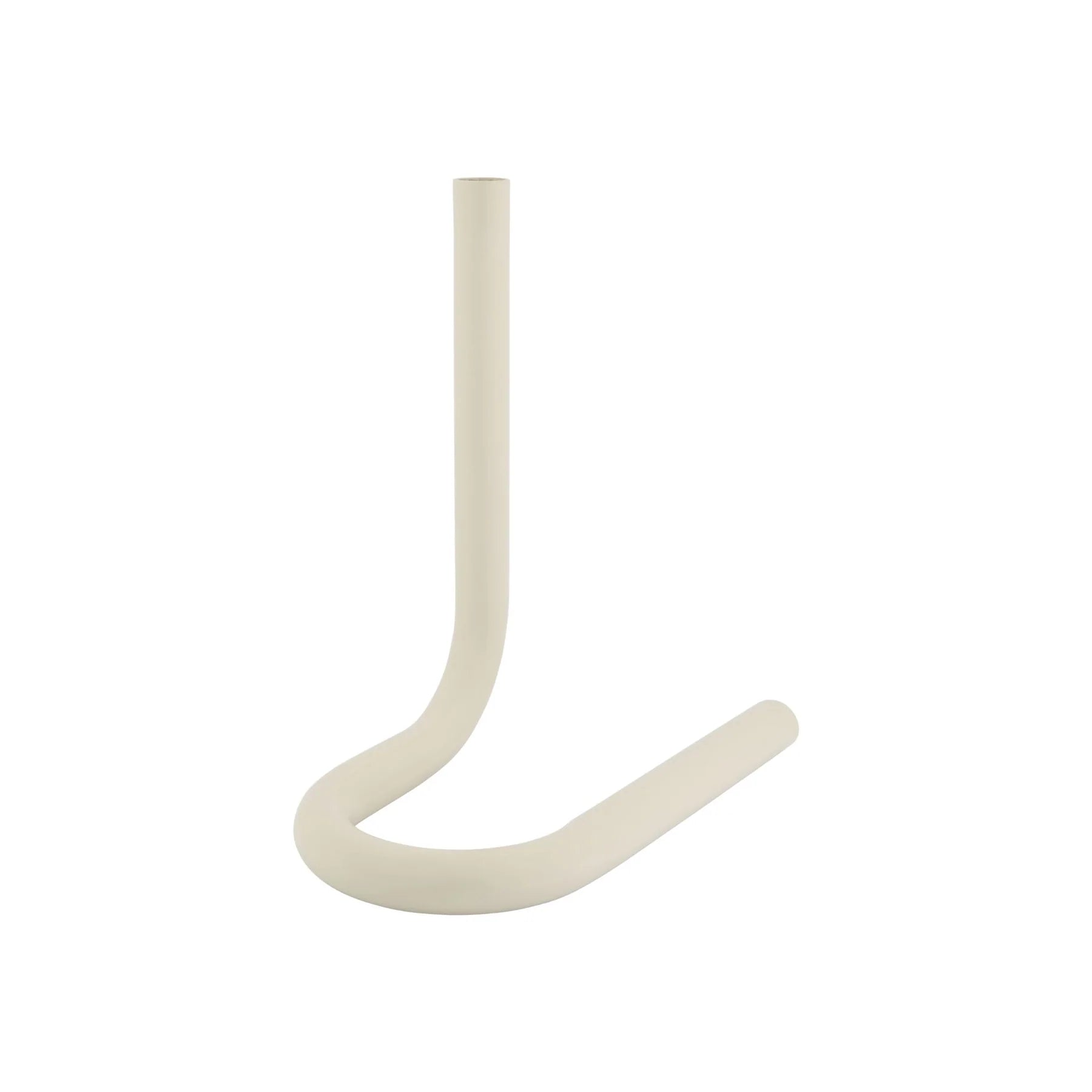 The Candle Holder is crafted from iron and shaped into a clean, tubular arc, offering a sculptural take on traditional candlelight. Its balanced silhouette stands beautifully on its own, or as part of a duo with the medium version.