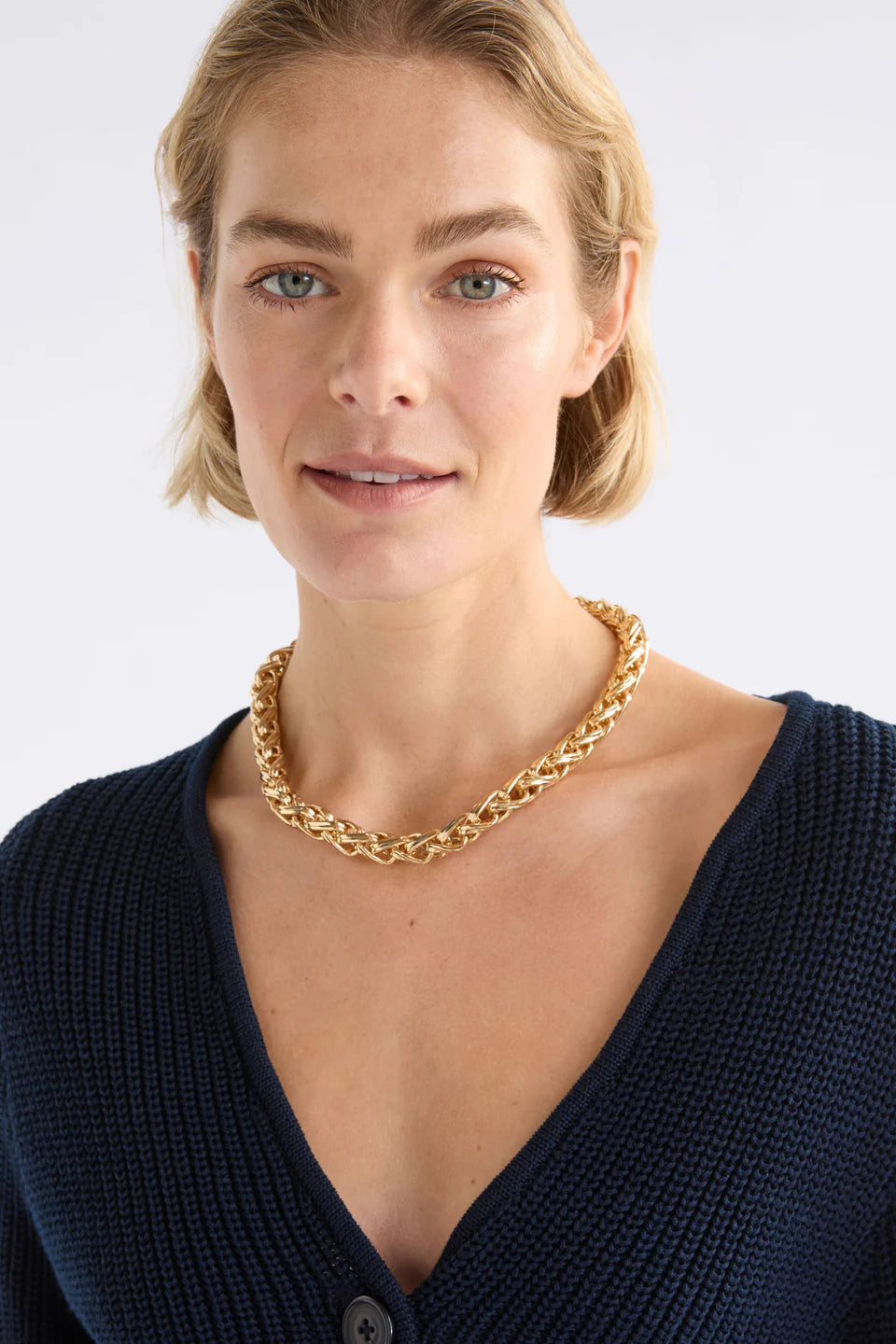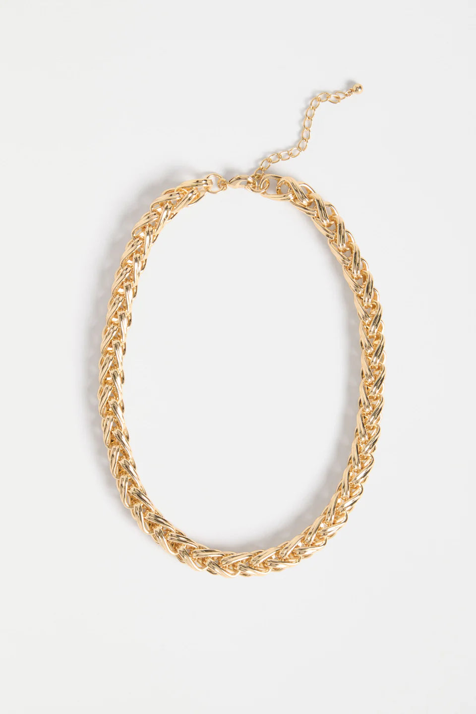 The Samman Necklace will add elegant-edge to your outfits across seasons and for years to come. This short necklace features chunky links interwoven in a unique formation, giving visual impact to your day and evening outfits