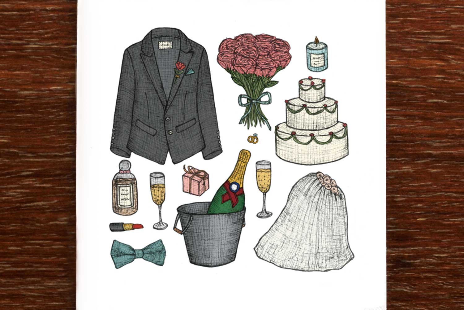 Hand illustrated congratulations wedding card Melbourne made, printed and designed.